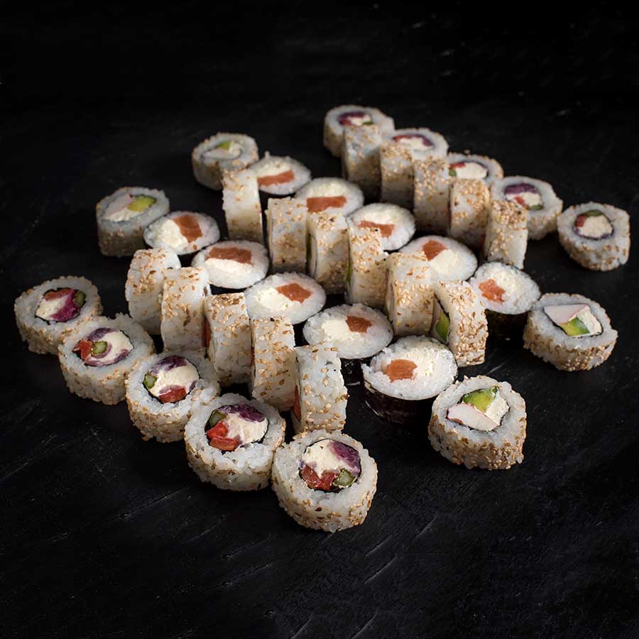 Roll California x 10, Roll Philadelphia x 10, Roll Guadalajara x 10, y Maki philadelphia x 10